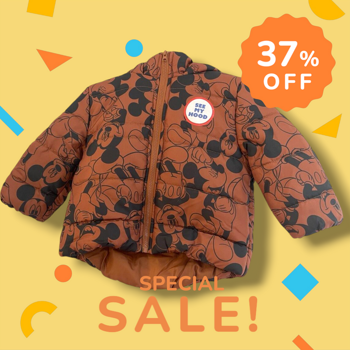 - Disney Mickey Mouse Brown Hooded Puffer Jacket 13348