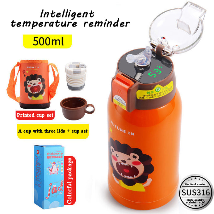 Feature: 500ml Kids 316 Stainless Steel Straw Thermos Cup Temperature LED Display Thermos Water Bottle Cartoon Leak-Proof Mug Children Gifts Product name: |