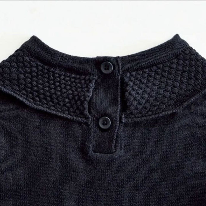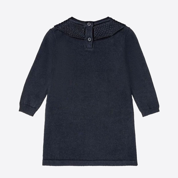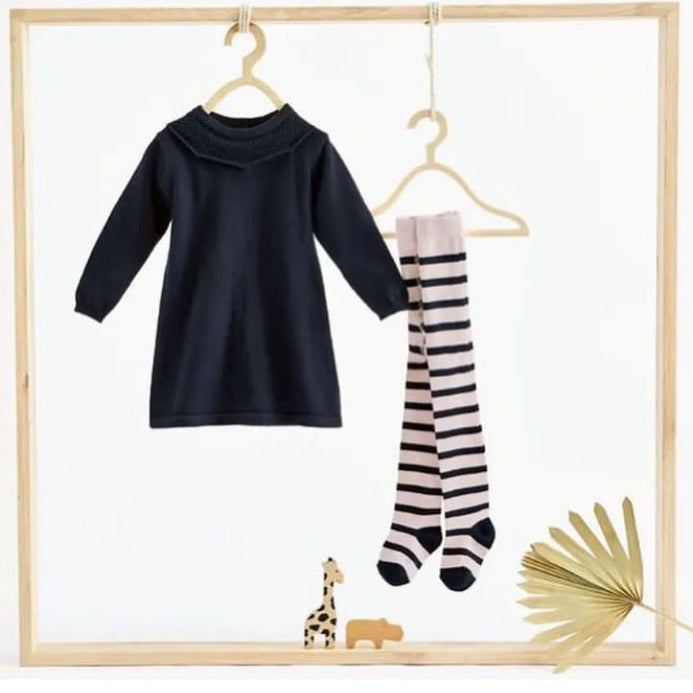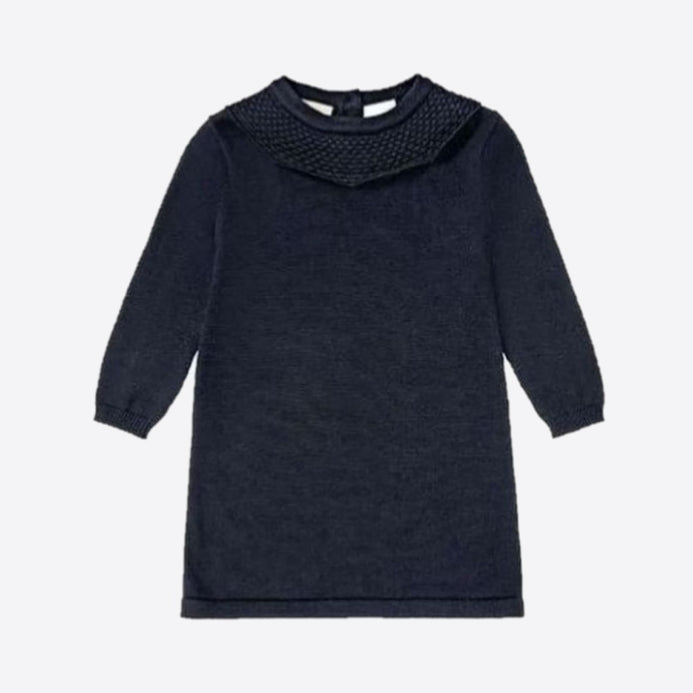 Msarim (Lahore, PK) Blue knitted sweater frock bohat soft, warm aur adorable lagti hai. Fitting perfect hai aur winter wear ke liye ideal. Quality bhi excellent — highly recommended