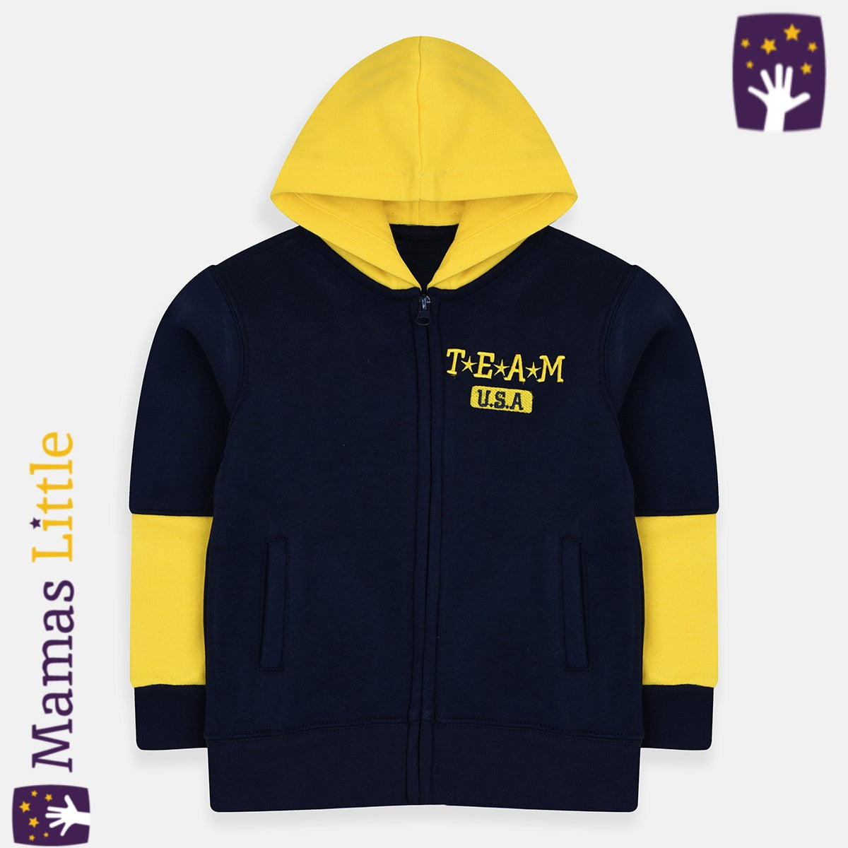 - ML Team Blue Yellow Embroided Fleece Zipper Hoodie 9726