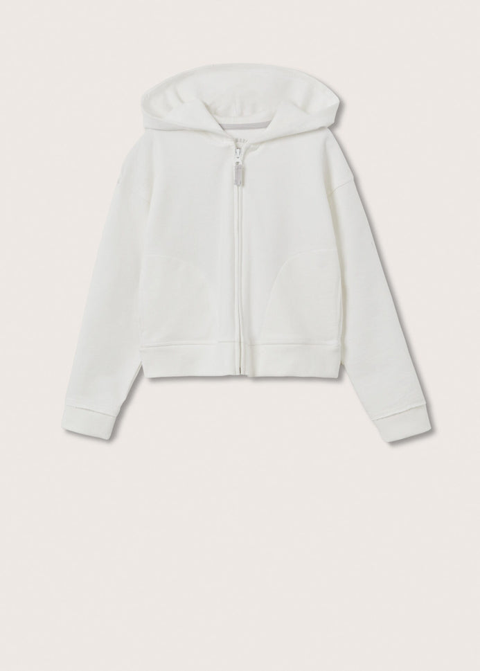 DESCRIPTIONSport. 100% cotton fabric. Cropped design. Hood. Rounded neck. Long sleeve. Two side pockets. Cable knit finish. Zip fastening on the front section. The garments labelled as Committed are products that have been produced using sustainable fibres or processes, reducing their environmental impact. Mango's goal is to support the implementation of practices more committed to the environment, and therefore increase the number of sustainable garments in the collection. |