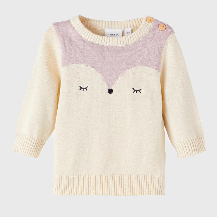- NME IT Fox Ecru Face Cream Knitted Sweater 11537