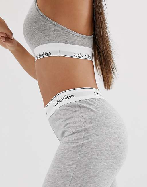 Calvin Klein's cotton modal leggings feature a wide elastic logo waistband and tight banded cuffs at the ankles. Tagless for comfort.