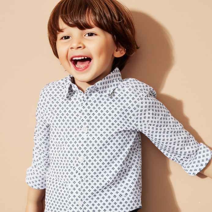 - MN قميص كاجوال أبيض بنمط أزرق 11950