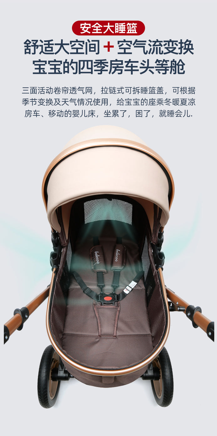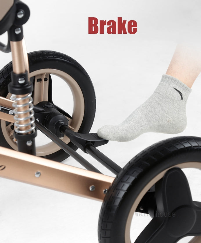 Give your baby a comfortable ride! This baby stroller is adjustable so that baby can sit or lie down. The handle is also adjustable so that your baby can face you or face the street, the chair is equipped with a reversible stroller seat, oriented forwards or backwards. The design of the structure adds security. With explosion-proof wheels and the material is super natural rubber. Also pedal brake, safer. Adjustable non-slip handle, you can choose the most comfortable height to push. And with adjustable ceiling, you can adjust it according to different weather conditions.
