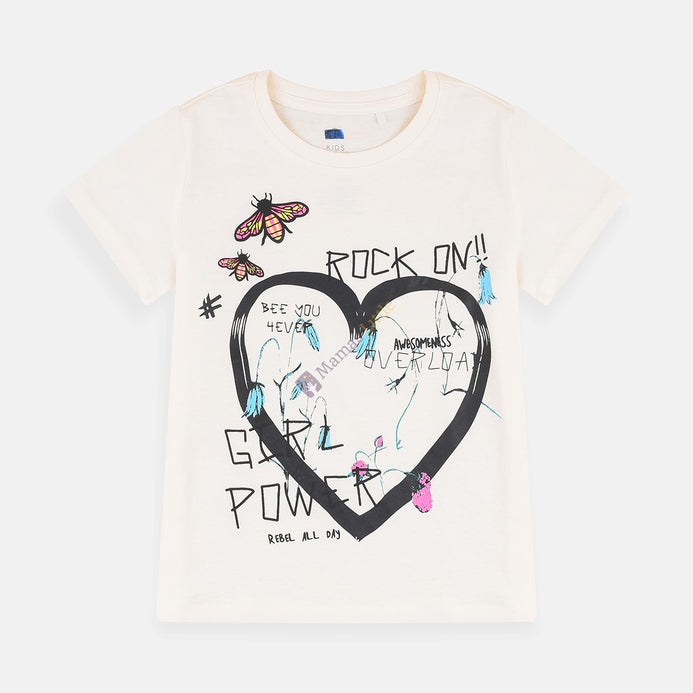 - Rock On Off White Heart Girl Power Organic Cotton Shirt 8262