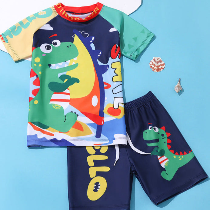 Hello Dino Top with Short Blue Swimsuit 13650