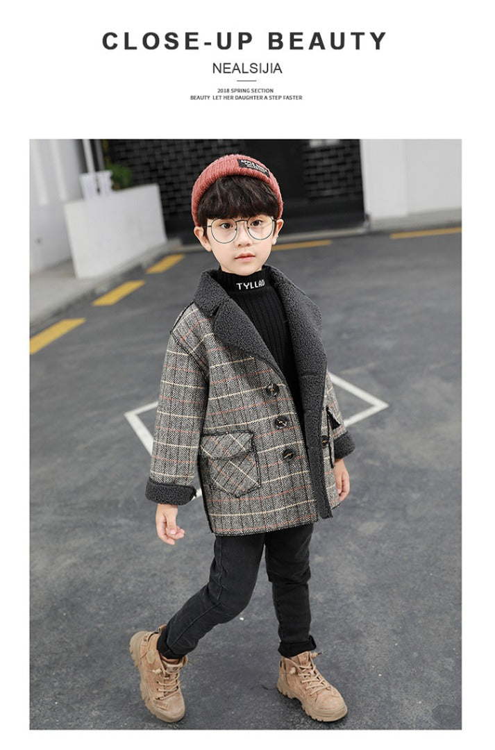 - Dark Grey Check long Coat 11457