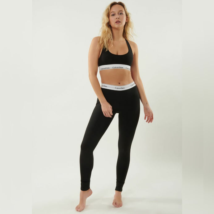 Calvin Klein's cotton modal leggings feature a wide elastic logo waistband and tight banded cuffs at the ankles. Tagless for comfort.