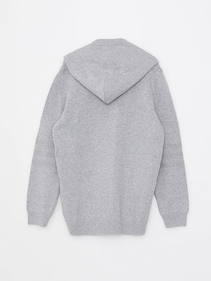 LCW Zipper Knitted Grey Hooded Cardigan 12598