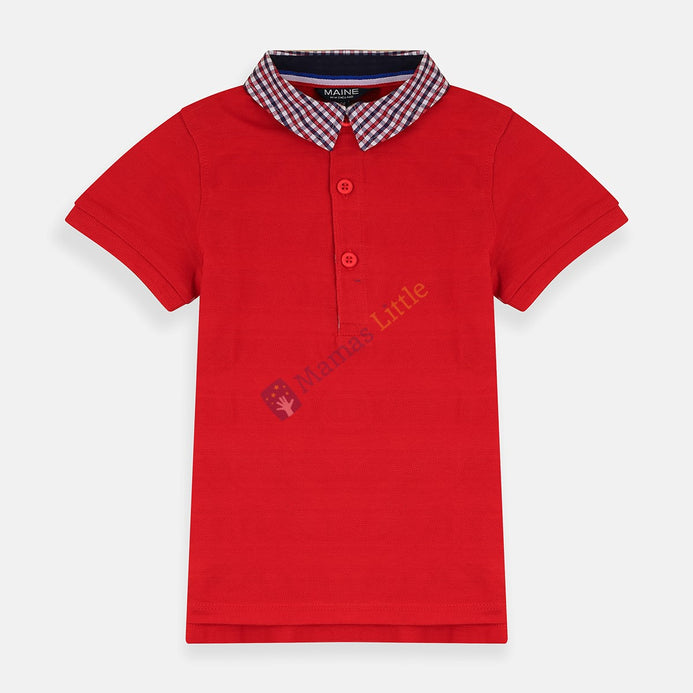 MNE England Check Collar Red Polo 8336