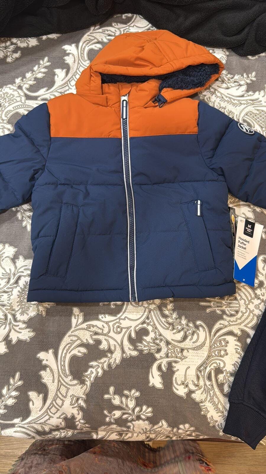 - Members Mark Orange Blue Fleece Inner Sherpa Hoodie Puffer Jacket 13146