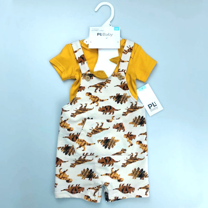 - Dinosaur Mustard White Dungaree with Bodysuit and socks Set 13000