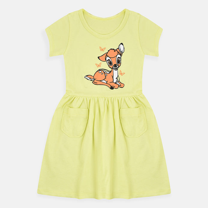 - ML Baby Deer Yellow Front Pocket Frock 8740