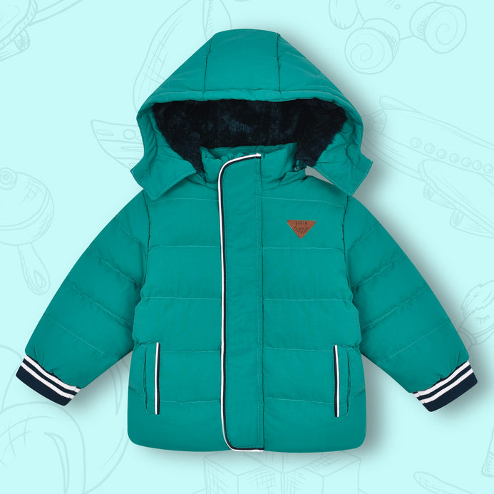 • Our kids' mini fur trim hooded infant puffer jacket has a quilted padded outer shell layer and skin friendly soft mini fur hood trim to keep your baby boy warm in the snow and wind; Inner soft sherpa fleece body lining to keep cuddly and fuzzy when traveling outdoors