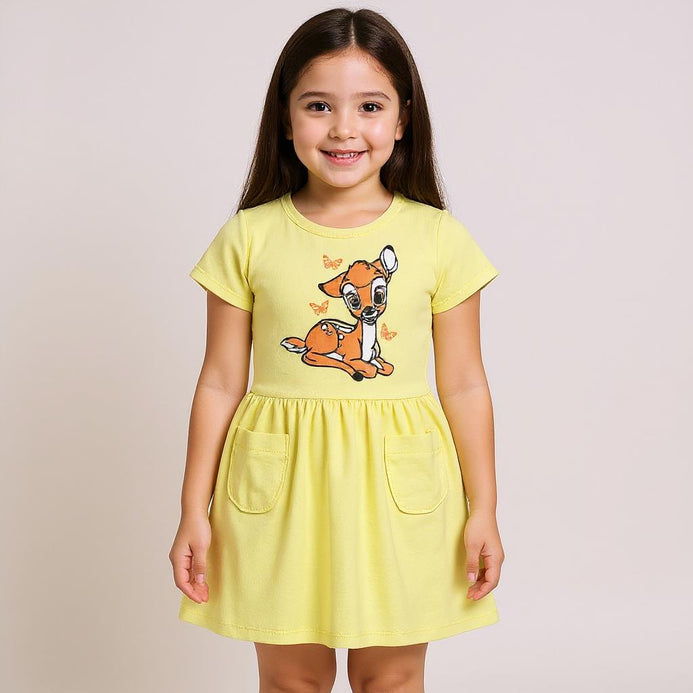 ML Baby Deer Yellow Front Pocket Frock 8740