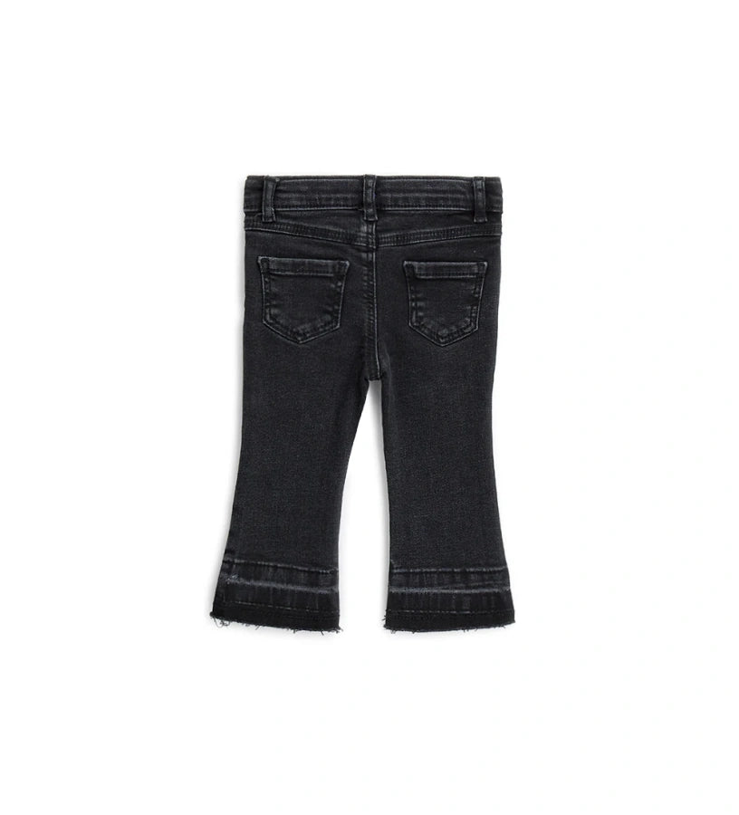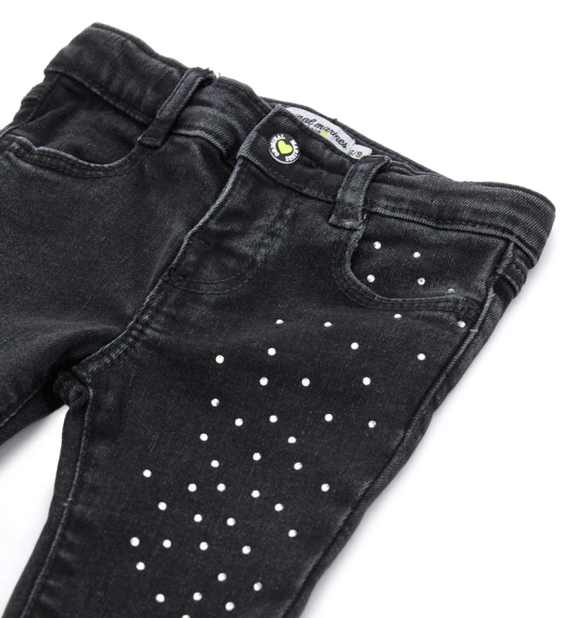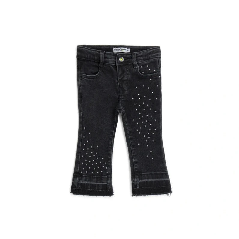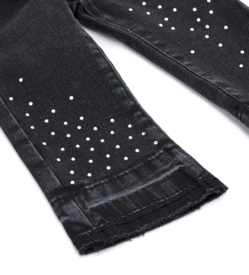 OM BELL-SHAPED JEANS WITH RHINESTONE Black Denim Pant 12833