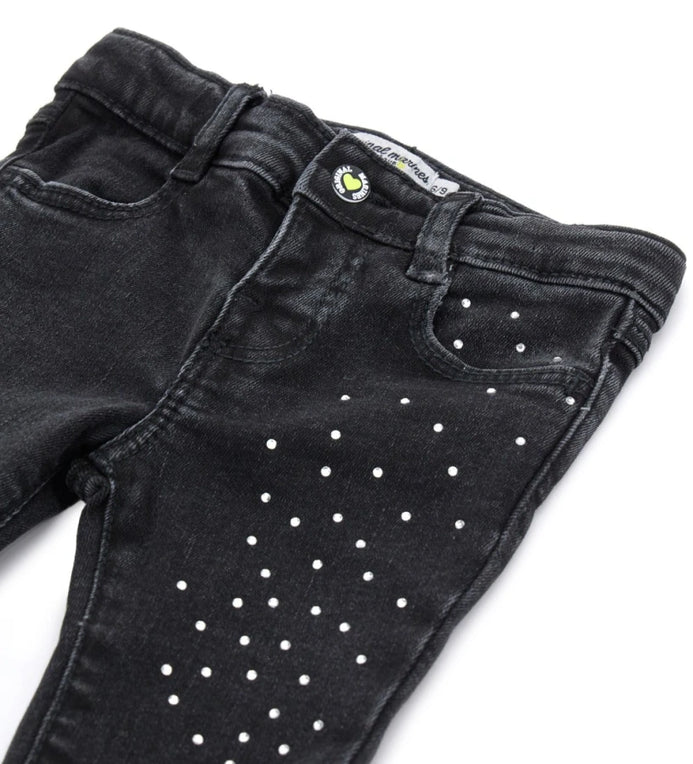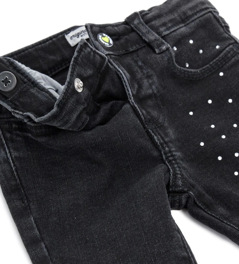 - OM BELL-SHAPED JEANS WITH RHINESTONE Black Denim Pant 12833