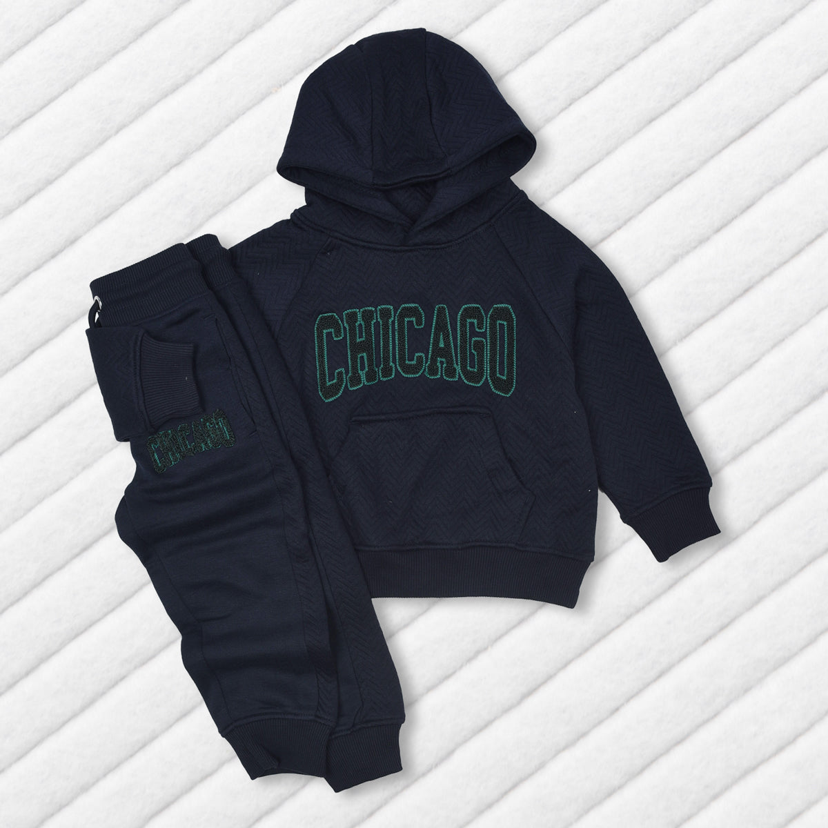 - PMK Quilted Chicago Embroided Blue Hooded Tracksuit 13337