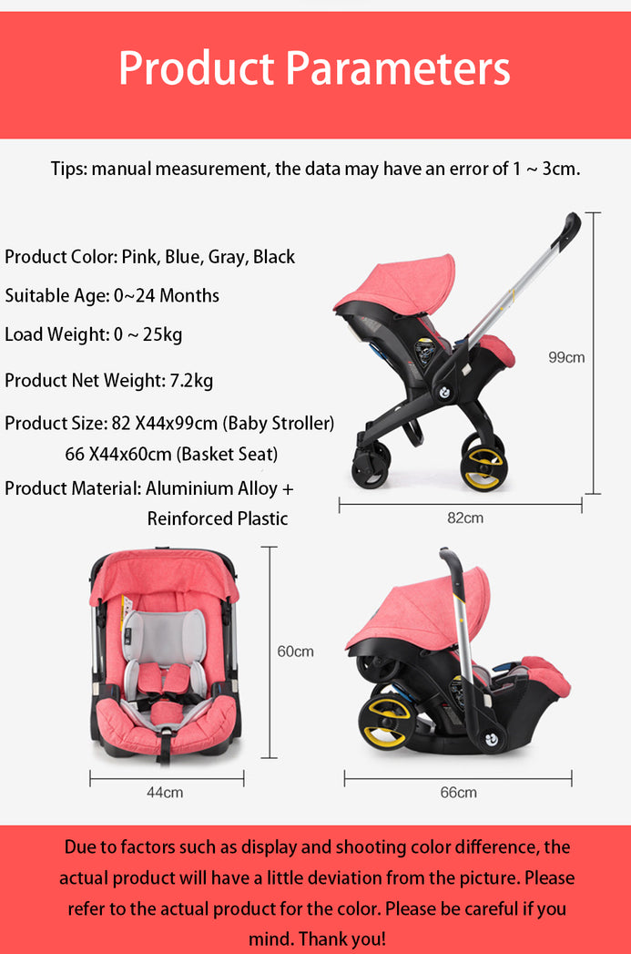 Baby Car Seat & Travel Stroller Convertible Car Seat and Pram with 5 Point Safety Harness Quick Delivery