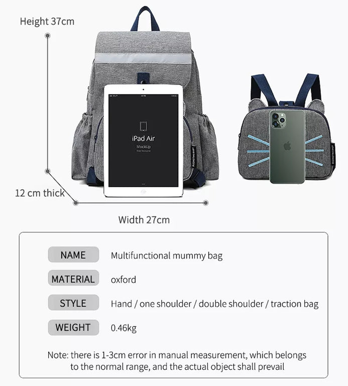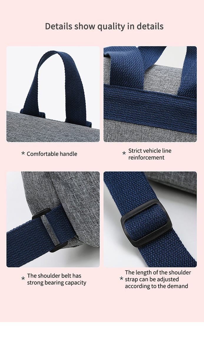 Lining Material: Polyester Shoulder strap style: double root Closing method: zipper With or without interlayer: None Style: mother and baby bag Function: backpack, handbag |