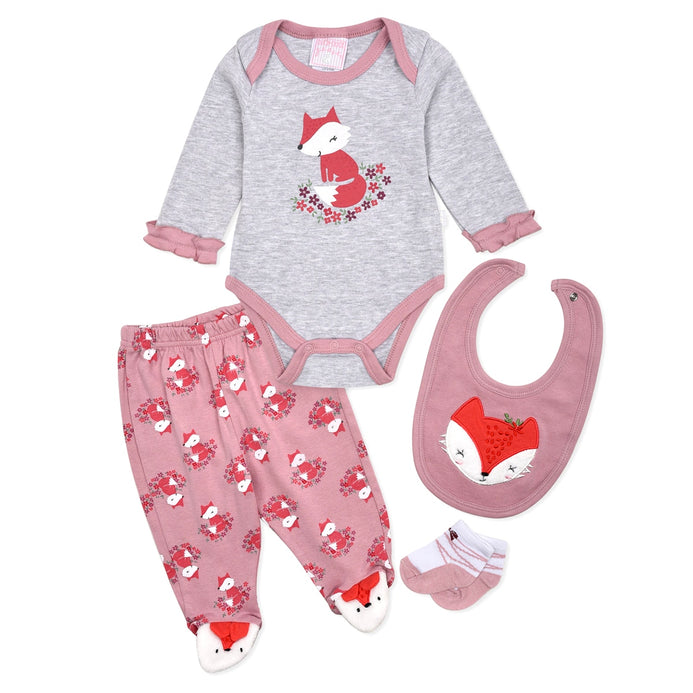 Fox Pink Romper Pajama Bib and Socks Starter Set 12891