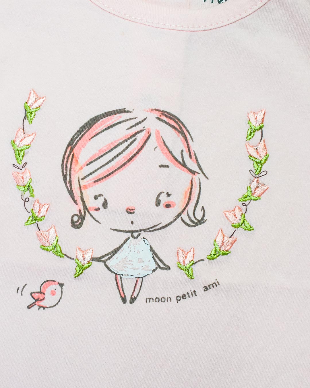 PRN Girl Embroided Flower Pink Shirt #13621