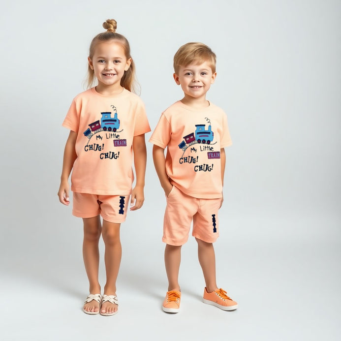 HT Train Peach Shirt Shorts Set Minor Wrinkles 13491
