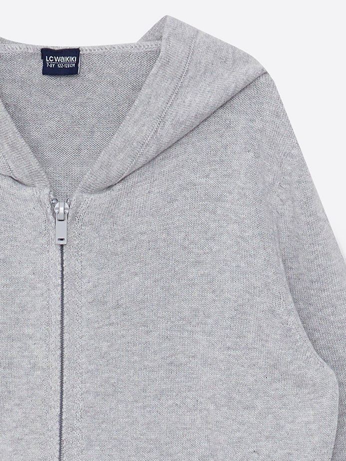 LCW Zipper Knitted Grey Hooded Cardigan 12598