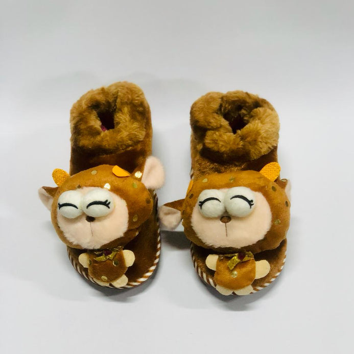 - Stuffed Character Brown Covered Winter Rubber Sole Slipper 6323