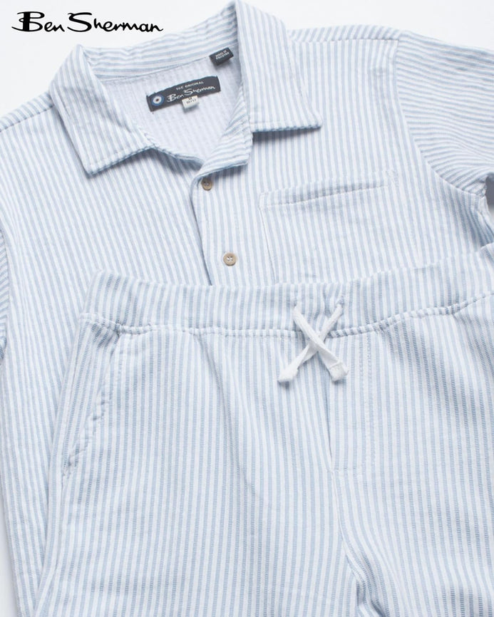 Ben Sherman Sky White Lining Shirt Shorts Set 13580