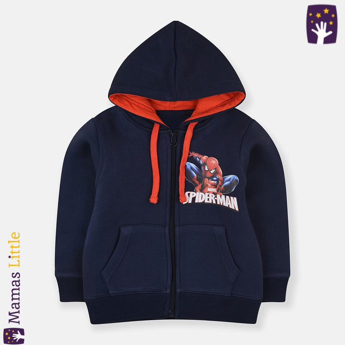 ML Spiderman Contrast Blue Zipper Fleece Hoodie 9870