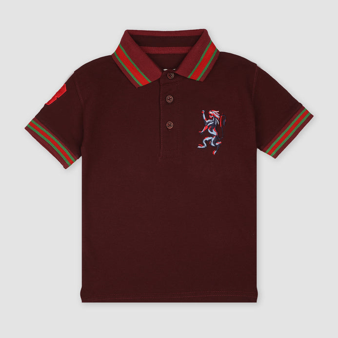 GRD Dragon Logo Multi Collar Stripe Maroon Polo 5071