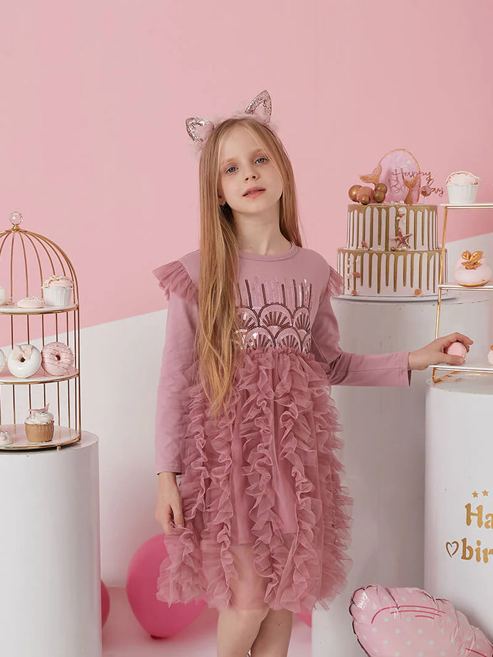 Tutu Layered Pink Full Sleeves Fancy Frock 12431