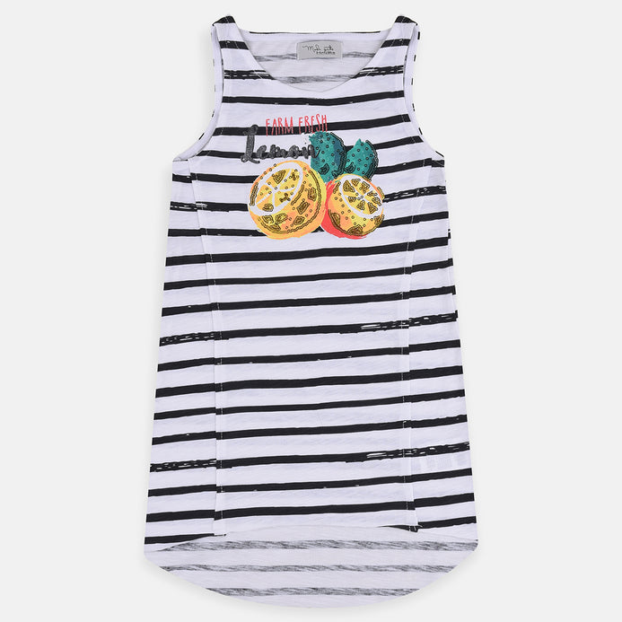 MADA Fresh Lemon Black Lining White Sleeveless Long Shirt 6793