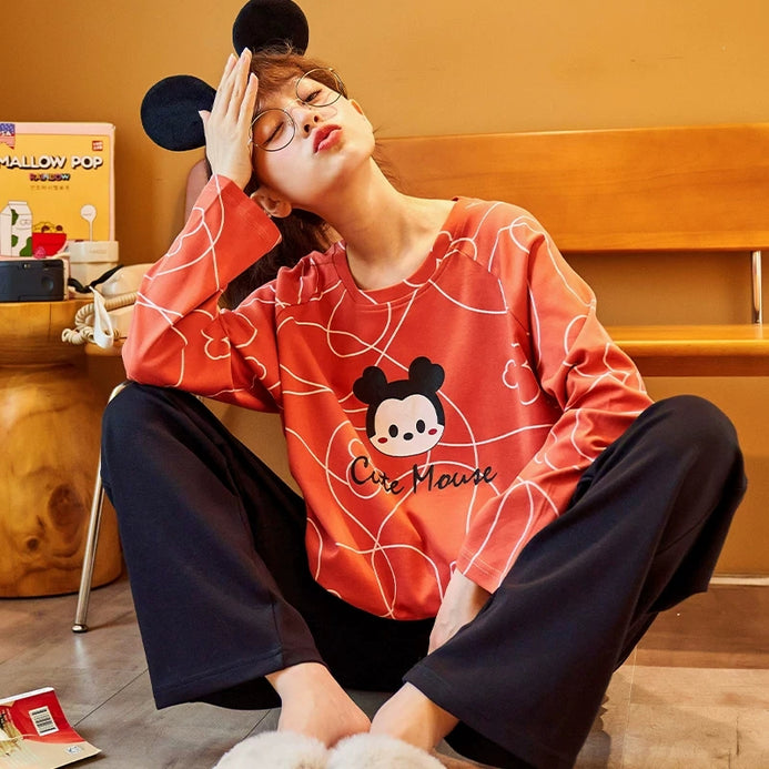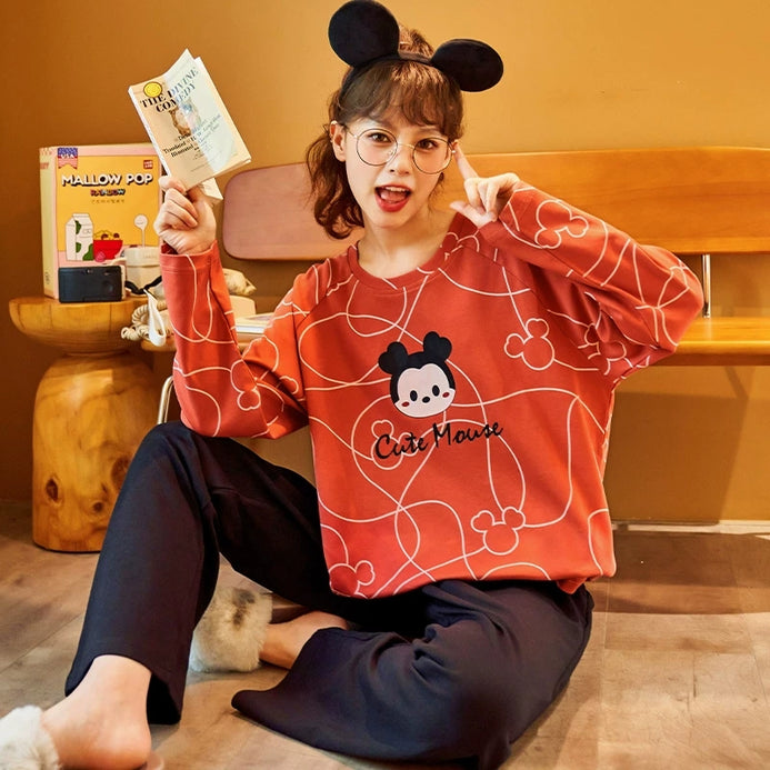 Women Cute Mouse Roundneck All weather Loungewear Set W134