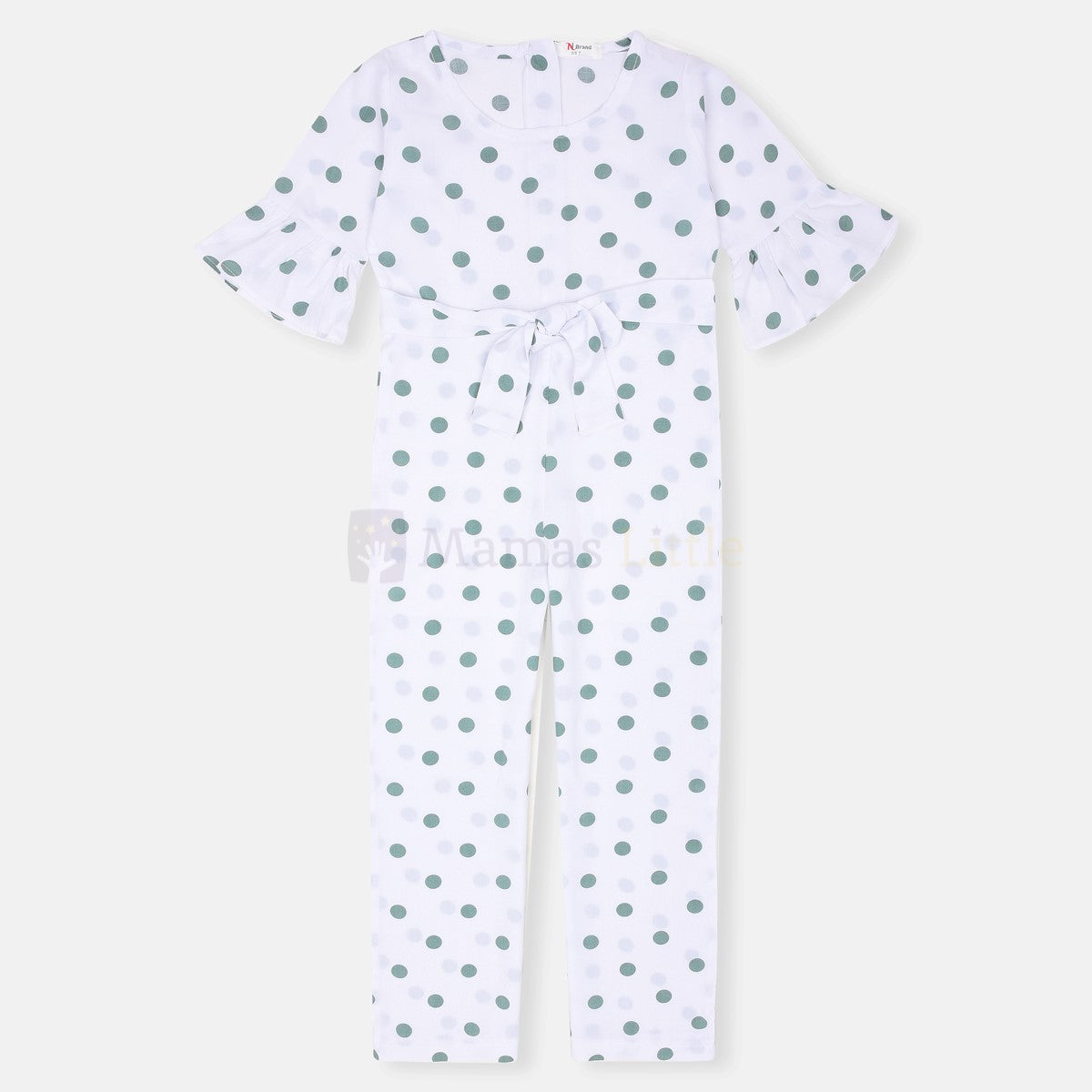 ML Green Polkadots White Allover Teens Jumpsuit 11884