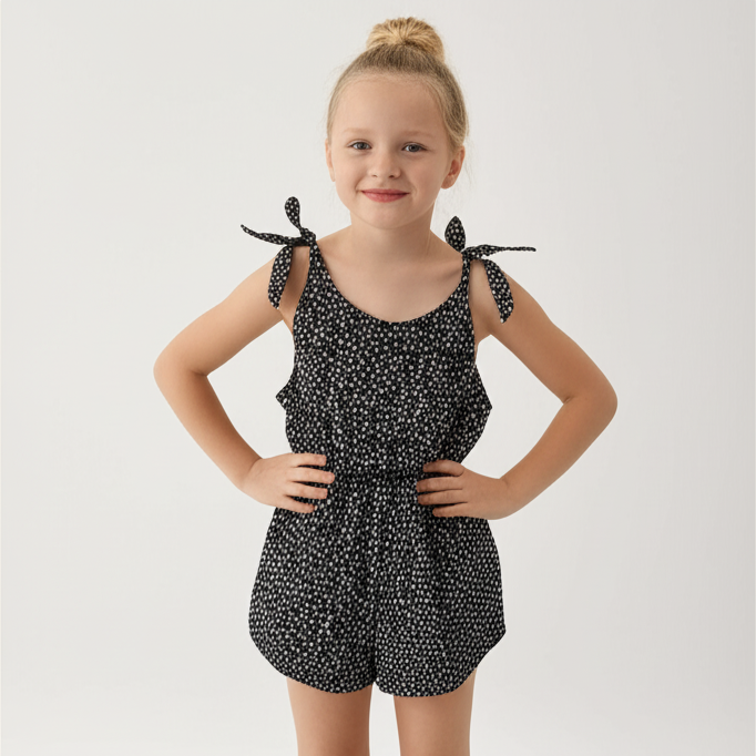 Taking the hassle out of packing for holiday, this neat little playsuit is perfect for mini fashionistas in the making. With a fashion in a breezy pure cotton, it's made for skedaddling along the beach front.