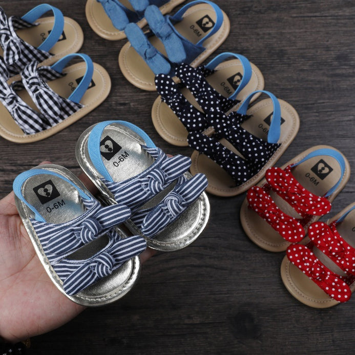 Grey Double Bow Lining Elastic Back Prewalker Sandal 2443 A