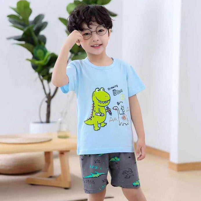 Drawing Dino Sky Blue Short and Shirt Set #7257