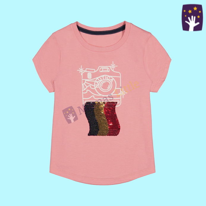 NUT Retro Camera Flag Sequence Pink Shirt 10270