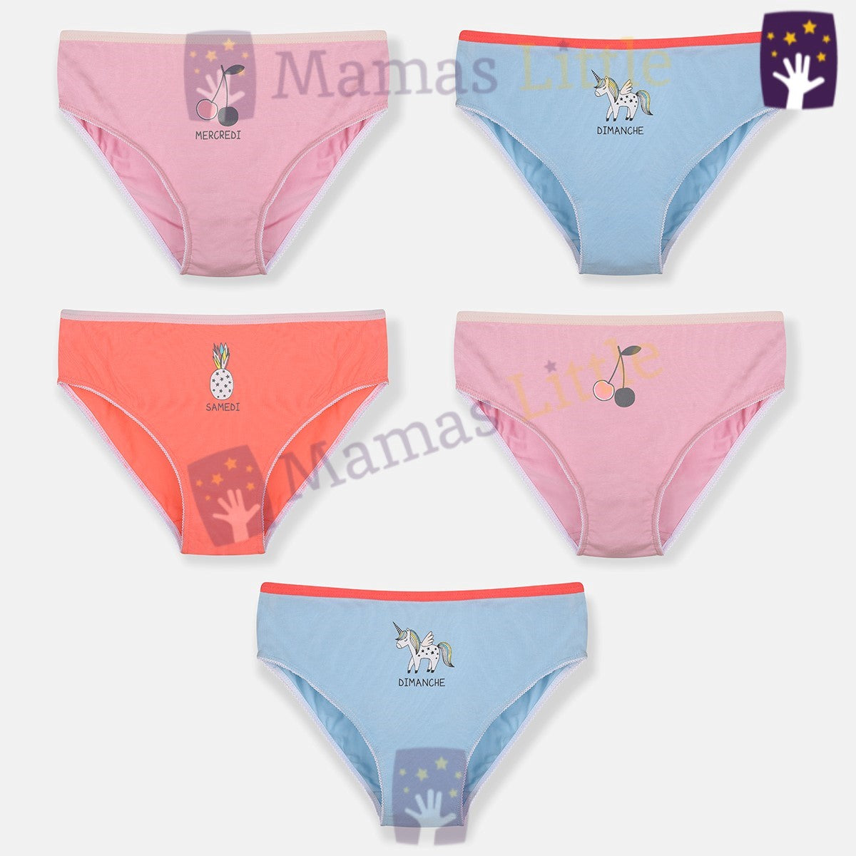 Adorable, fun, dreamy…because your daughter is all of this and much more, a pack of 5 fun and comfortable briefs, one for each day of the week!