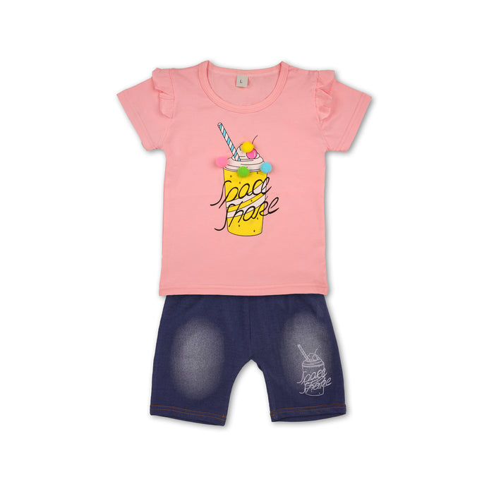 Space Shake Light Pink Top With Shorts 2 Piece Set 4043
