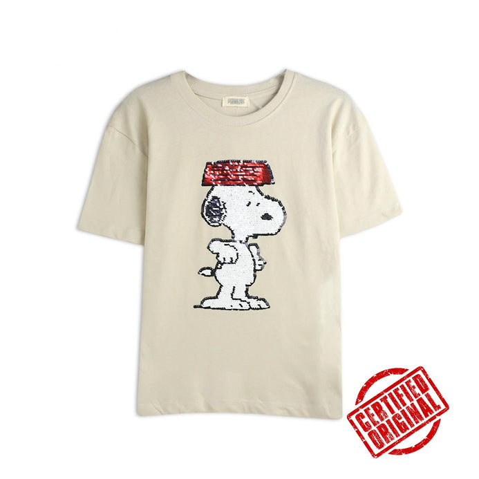 Peanuts Snoppy Reversible Sequin Beige Shirt 12041