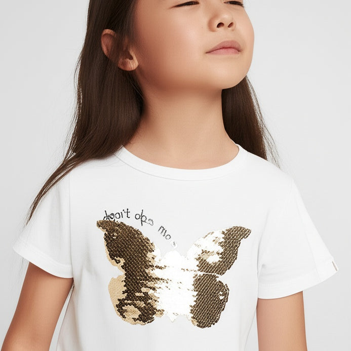 Fox B Butterfly Sequin White Shirt 7327