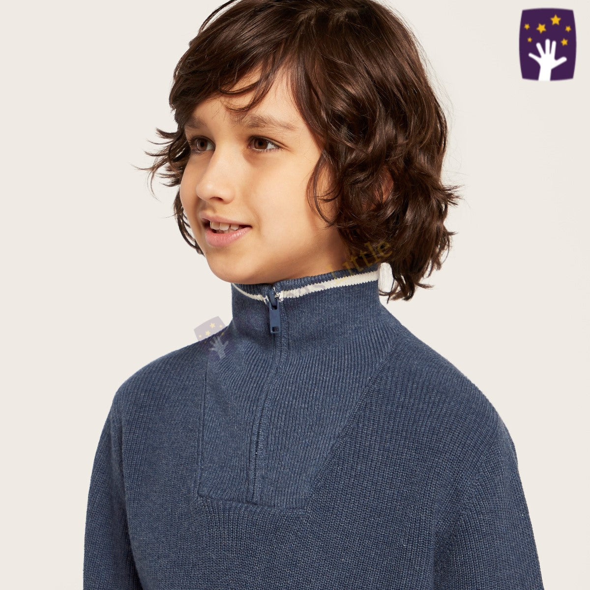 - ANK Blue Half Zip Long Neck Knitted Sweater 10027