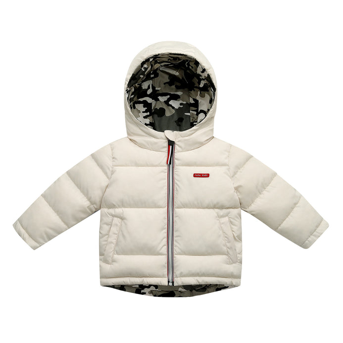 Camouflaged White Dual sided Hooded Puffer Jacket 12389
