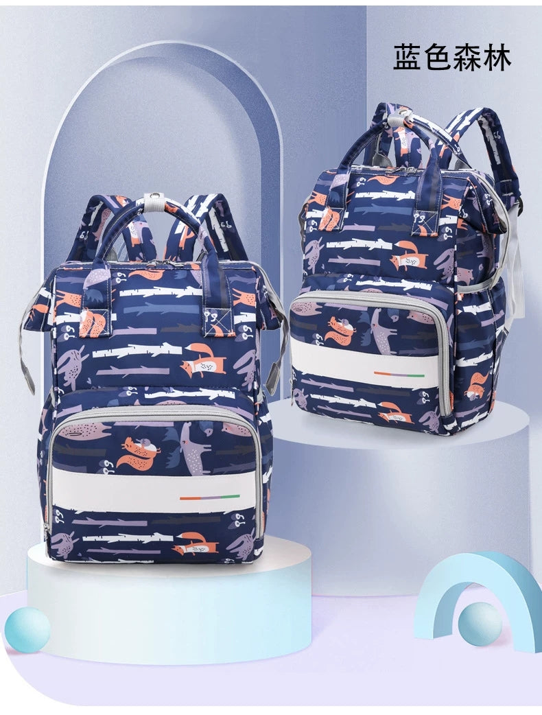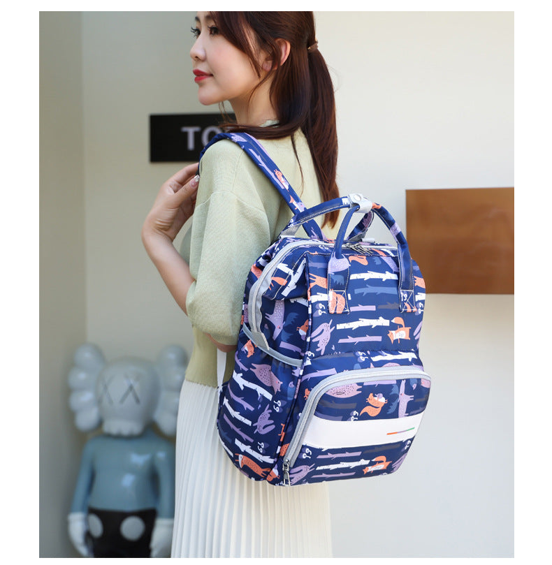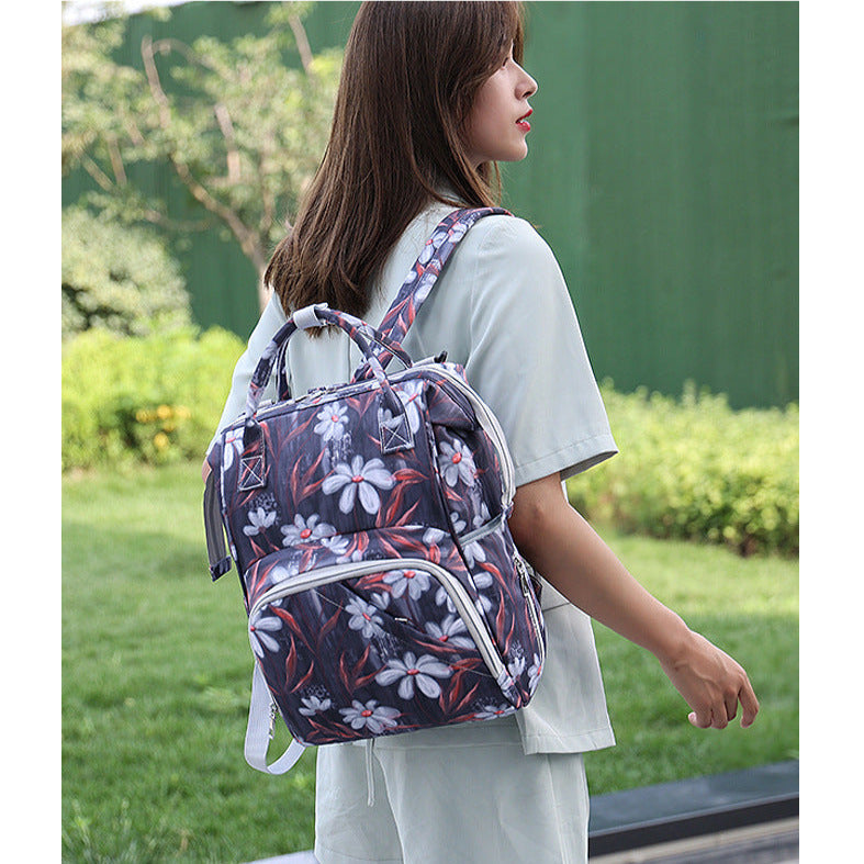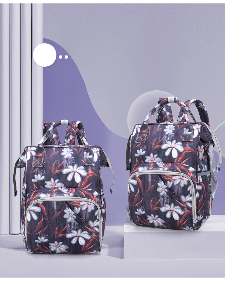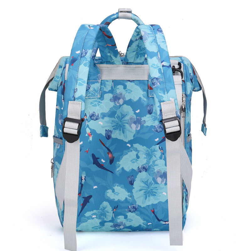 - Fish Flower Mummy Baby Waterproof Travel Diaper Backpack